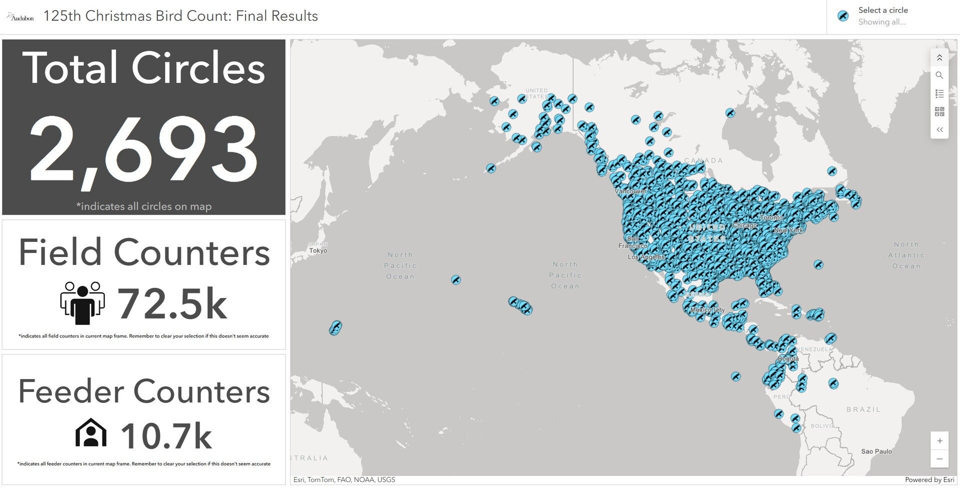 It is the longest-running community science project on Earth, and in 2025 it reached another milestone. More than 2,600 count circles were surveyed, spanning neighborhoods, wetlands, forests, coastlines, and cities across the Americas. The map continues to grow.