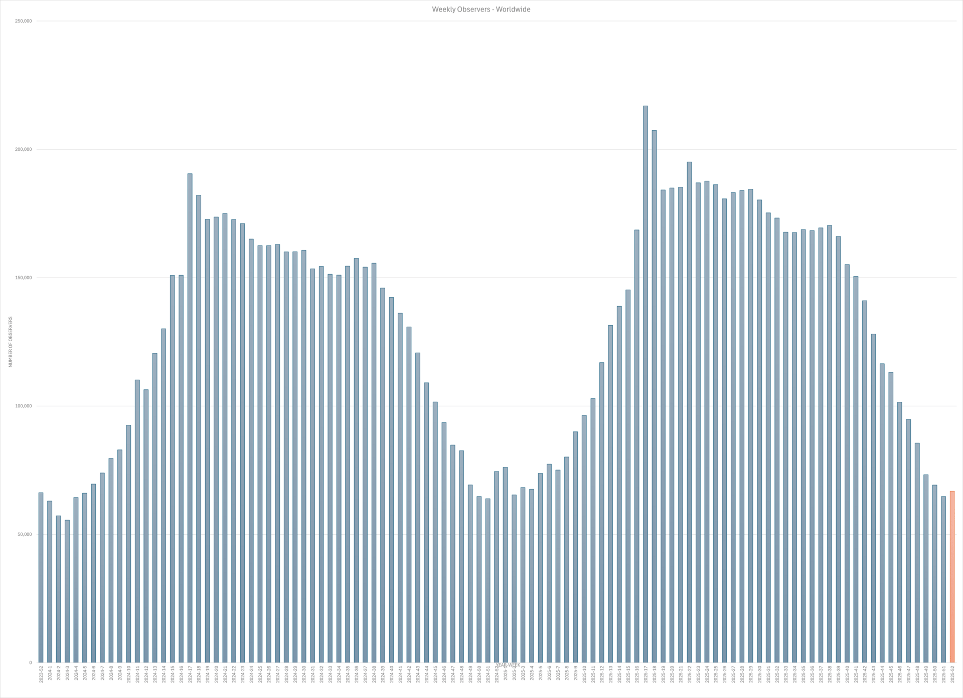 >7 Million Total Weekly Observers in 2025