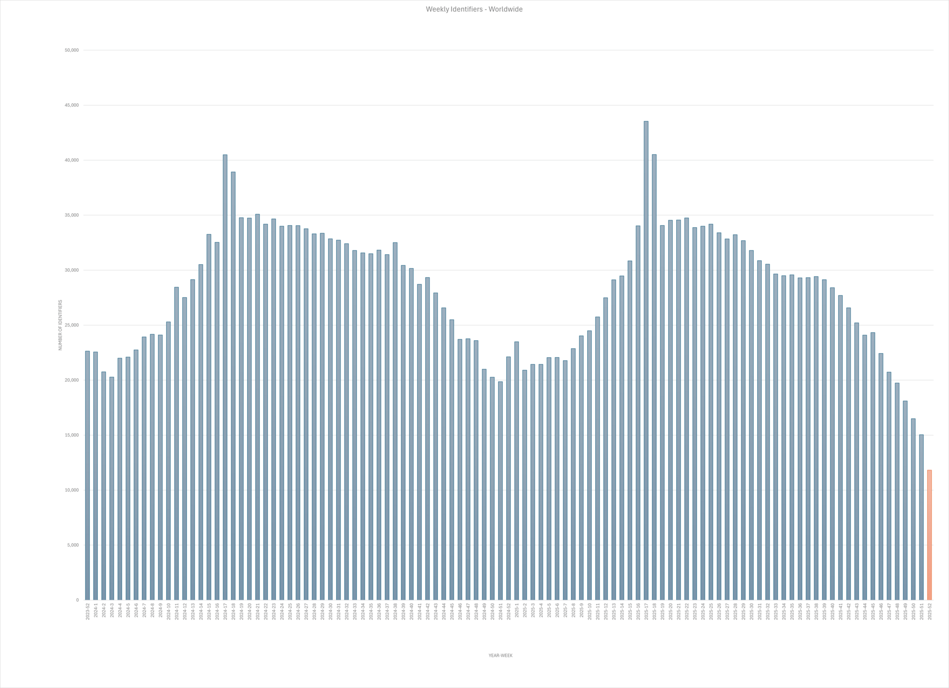>1.4 Million Total Weekly Identifiers in 2025